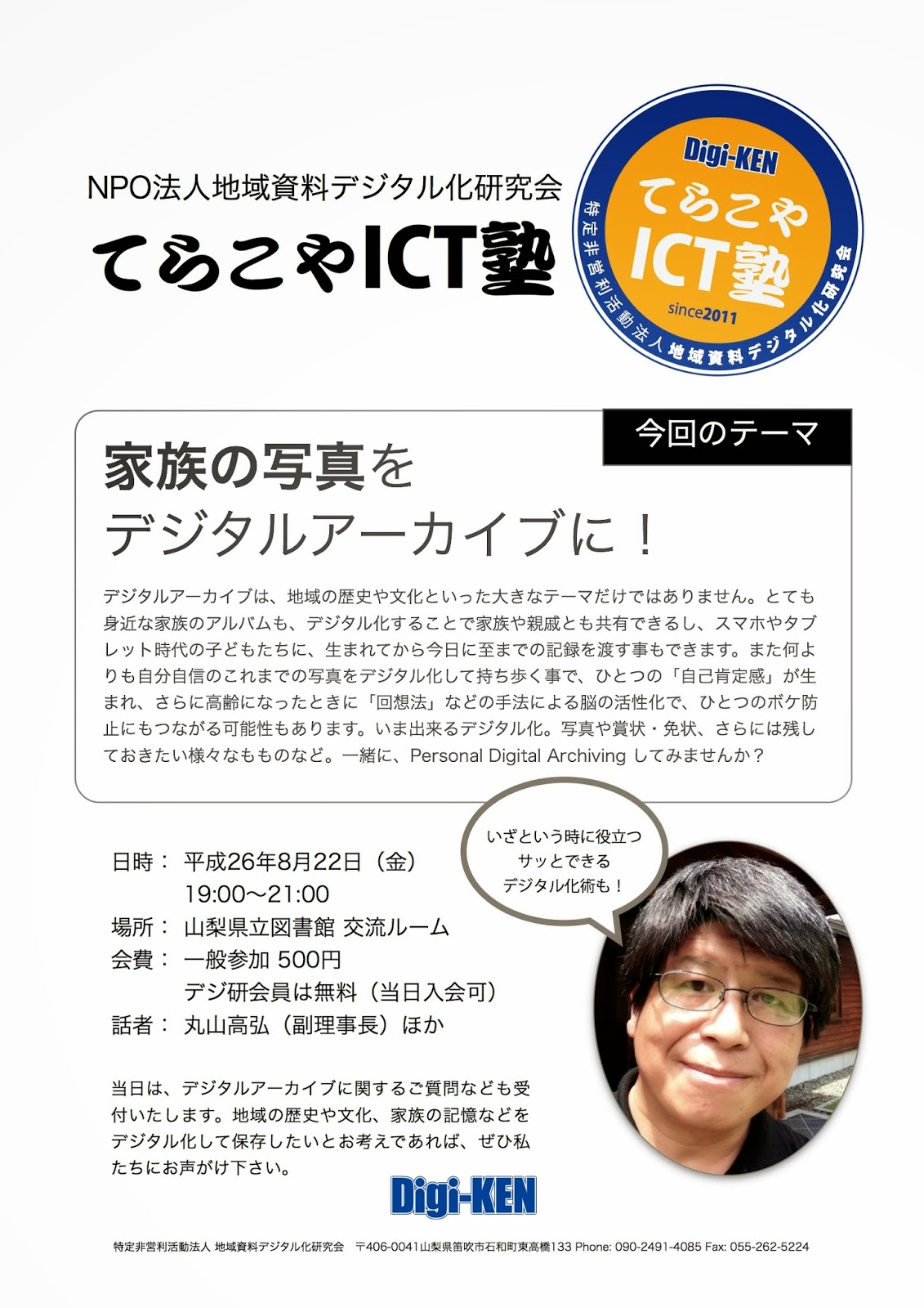 「家族の写真をデジタルアーカイブに!」 デジ研寺子屋ICT塾8/22
