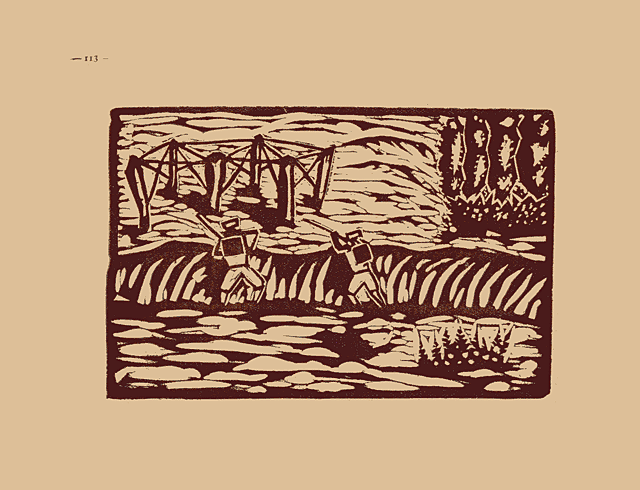 今日も楝兵場では、近頃男らしい顏色になつた初年兵さんが、一生懸命に訓楝を受けてゐる。 川べりの兵隊さんは二年兵でせう。射撃の姿勢、地物の利用もよく、軍人精神も亦横溢して見える。 ポプラの芽のほころびそむる頃ともなれば、其處此處に若草を摘む麗人の姿も見出される。 楝兵場の東は相川によつて甲府へ、西は田圃續きで戰略上有名な登美高地に連つて居る。 縣では非常時日本の航空に備えるため、此處を大擴張して飛行場に仕立てようと、着々其の準備を進めて居る。