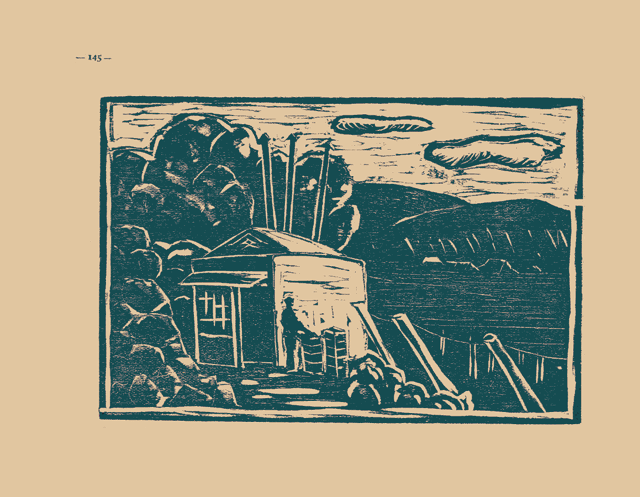 中秋の候、棚下の黄緑葉の間から、紫水晶に似た美果が房々と垂れ下る樣は、何ともいはれぬ[# 原本では「ね」となっている]美觀である。畫の左方にあるのは葡萄貯藏庫で、この庫の中に置けば、何時でも新鮮そのまゝを味ふことが出來る魔法の倉である。