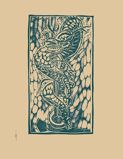 仙娥瀧を境に峽谷から開放され、猪狩の部落を約二粁進めば金櫻神社がある。石段の上には隨神門、本殿、拜殿、神樂殿、東の宮、中の宮、太皷殿、神輿庫等の國寳建造物、若しくはこれに準ずる古建築が立ち並び、その構造の精巧、彫刻の華麗、金壁の燦然たる、眞に人工美の粹を盡してゐる。 この版畫に見る、登り龍の彫刻は、名匠左甚五郎の作と傳へられ、有名なものである。