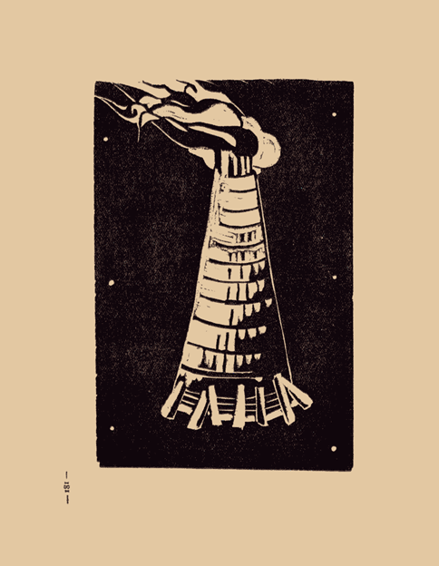 82 吉田の火祭 陰暦七月二十一日の夜、富士吉田より富士頂上まで、此の版畫の如き松薪を燃やすのだ。松薪は筍形に積み上げ長さ三米餘、根の廻り二米に及び、火は徹宵燃やし續けられる。幾百の火柱は炎焔天を焦し黒煙空に冲して、恰も大小の火龍の爭ふて昇天せんとするかの觀を呈してゐる。實に奇絶壯絶他に類を見ない祭である。然も此の夜にはどんな風があつても、昔から火事の起つた例がない。これ神徳の致す所と土地の者は畏敬してゐる。富士登山の道はいくつかあるが、吉田から登る北口登山は第一に數へられてゐる。大月からこゝまで山麓電車が通じてゐる。近年この吉田を中心に明見、瑞穗、船津等山麓都市としての發展は素晴しいものである。甲斐絹の如きも谷村に次ぐ生産地として亦名高い。 |